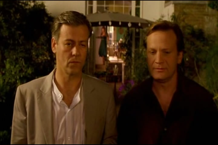 Robin goes cruising in the public toilets where he meets Julian (James Wilby). They both exchange knowing glances and are intending to enter one of the cubicles together, when they are interrupted. Robin leaves. He waits outside briefly but doesn’t see Julian come out. He heads to a dinner party being held by Roger (Tom Beard) and Belinda (Rachel Blake), where Roger makes it clear that he’s unhappy in his marriage and wants to be able to “play the field again”.