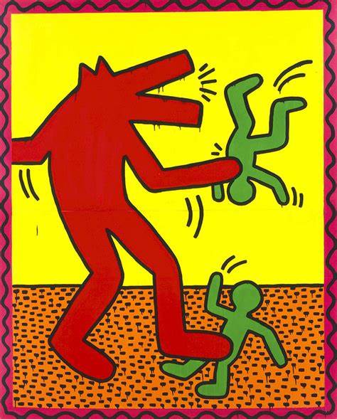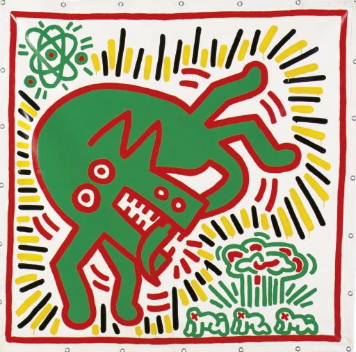 Haring was represented until his death by art dealer Tony Shafrazi. Since his death in 1990, his estate has been administered by the Keith Haring Foundation, which is represented by Gladstone Gallery. In May 2017, Haring’s painting Untitled (1982), which features his signature symbols—the radiant baby, barking dogs, angels and red Xs—sold for $6.5 million at Sotheby’s in New York, becoming the most expensive Haring artwork sold at auction. However, the winning bidder, Anatole Shagalov, failed to pay and Sotheby’s resold it for $4.4 million in August 2017.