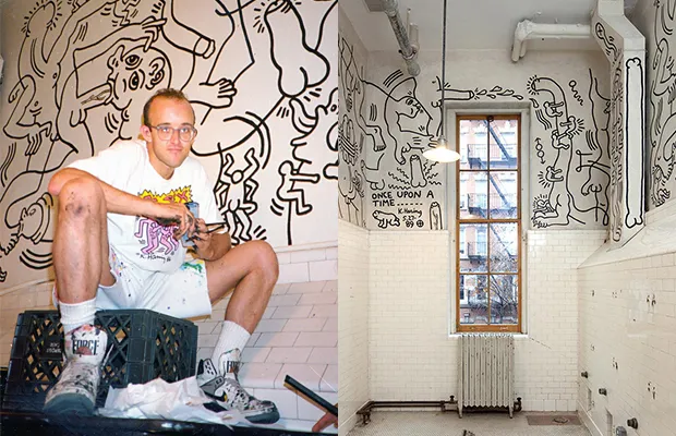 Haring’s work is in major private and public collections, including the Museum of Modern Art, the Morgan Library and Museum, and the Whitney Museum of American Art in New York City; Los Angeles County Museum of Art; the Art Institute of Chicago; the Bass Museum in Miami; Musée d’Art Moderne de la Ville de Paris; the Brant Foundation Art Study Center in Greenwich, Connecticut; the Carnegie Museum of Art and the Andy Warhol Museum in Pittsburgh; the Ludwig Museum in Cologne; and the Stedelijk Museum in Amsterdam. He also created a wide variety of public works, including the infirmary at Children’s Village in Dobbs Ferry, New York, and the second floor men’s room in the Lesbian, Gay, Bisexual & Transgender Community Center in Manhattan, which was later transformed into an office and is known as the Keith Haring Room. In January 2019 an exhibit called “Keith Haring’s New York” opened at New York Law School in the main building of its Tribeca campus.