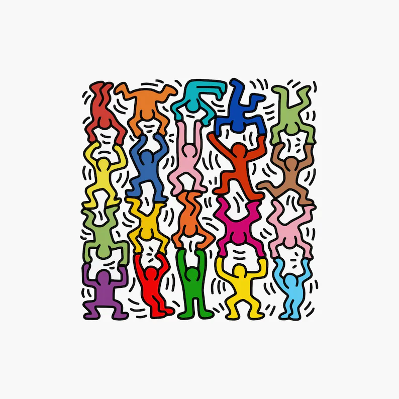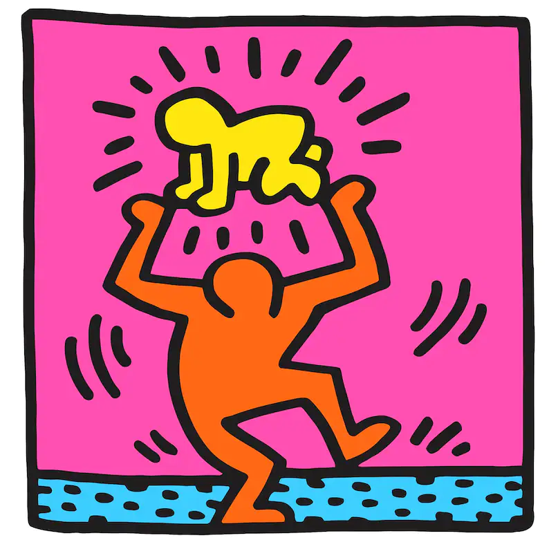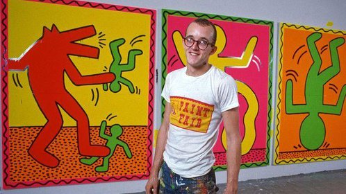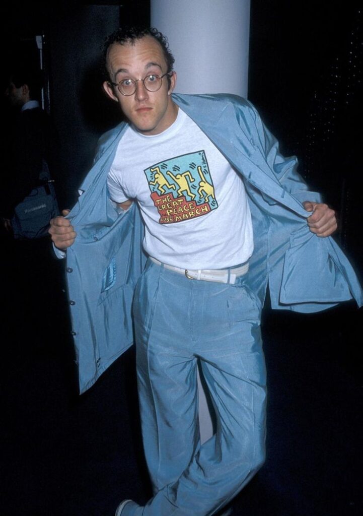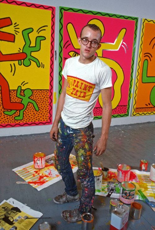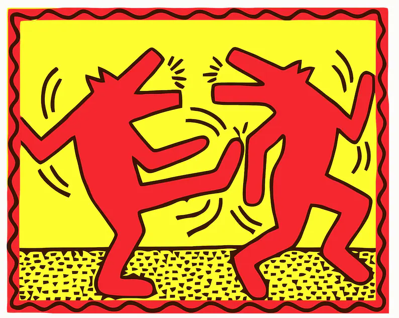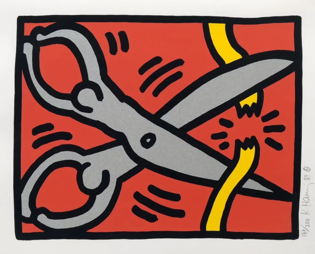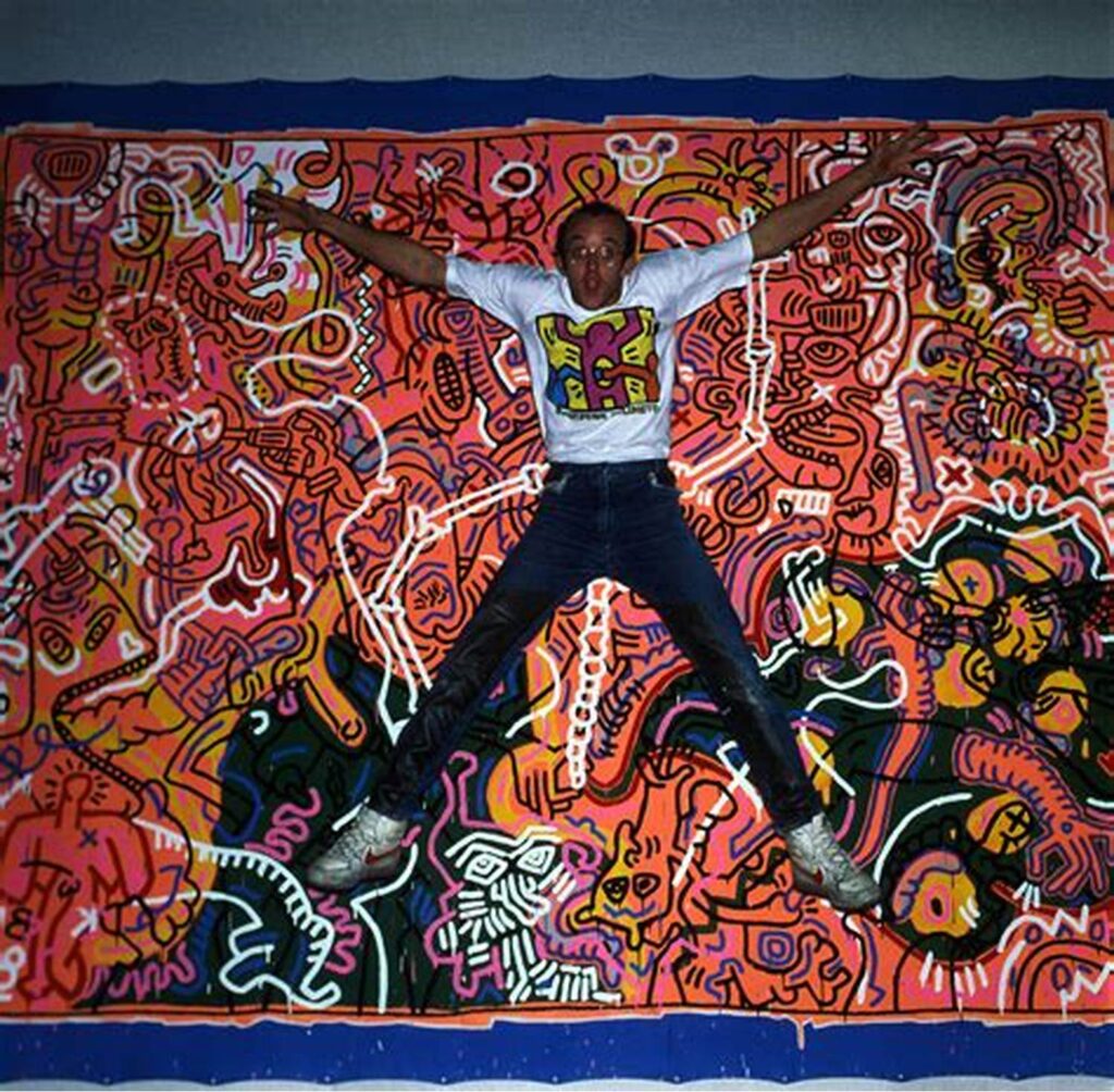 Keith Allen Haring (May 4, 1958 – February 16, 1990) was an American artist whose pop art emerged from the New York City graffiti subculture of the 1980s. His animated imagery has “become a widely recognized visual language”. Much of his work includes sexual allusions that turned into social activism by using the images to advocate for safe sex and AIDS awareness. In addition to solo gallery exhibitions, he participated in renowned national and international group shows such as documenta in Kassel, the Whitney Biennial in New York, the São Paulo Biennial, and the Venice Biennale. The Whitney Museum held a retrospective of his art in 1997.