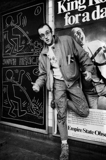 Haring moved to the Lower East Side of New York in 1978 to study painting at the School of Visual Arts. He also worked as a busboy during this time at the nightclub Danceteria. While attending school he studied semiotics with Bill Beckley and experimented with video and performance art. Haring was also highly influenced in his art by author William Burroughs.
