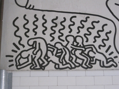 Keith’s young sex life started with his friend Susan and continued on for a few years, until Keith was starting to take more notice of other men and in Pittsburgh he started having randon sex with men. Keith and Susan live close to the biggest gay cruising area and near the Art Centre and this became a new exprience for Keith. He was sleeping with men without telling Susan this is pre AIDS, Susan must have know what was happening and was too happy be on the move, Minneapolis, San Francisco and the Castro area where Keith finally told Susan that their relationship was not going to last as he preferred men. Susan was broken hearted, Keith moved to New York in 1978 where he discovered a gay bar called “The Barbary Coast”. He would walk down to Christopher Street, he said it was like gay Disneyland. Keith always ended up heading down to the Hudson River Piers. Keith was always in a hurry and sex became a nightly routine; you can see this staring to appear in his art works.