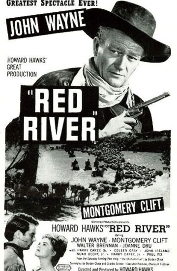 At age 25, Clift’s first Hollywood film role was opposite John Wayne in the Western film Red River; director Howard Hawks was impressed by his recent stage performance and was willing to sign him with no strings attached, which greatly appealed to Clift’s sense of independence. Although filmed in 1946, the film was delayed release until August 1948. A critical and commercial success, the film was nominated for two Academy Awards.