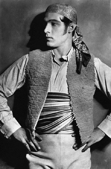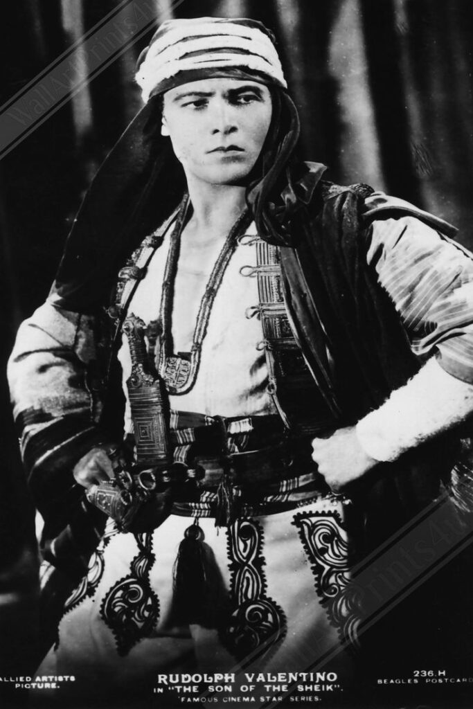 Valentino was a sex symbol of the 1920s, known in Hollywood as the “Latin Lover” (a title invented for him by Hollywood moguls), the “Great Lover”, or simply Valentino. His early death at the age of 31 caused mass hysteria among his fans, further cementing his place in early cinematic history as a cultural film icon.
