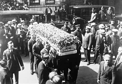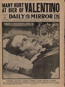 An estimated 100,000 people lined the streets of Manhattan to pay their respects at his funeral, handled by the Frank Campbell Funeral Home. Suicides of despondent fans were reported. Windows were smashed as fans tried to get in and an all-day riot erupted on August 24. Over 100 mounted officers and NYPD’s Police Reserve were used to restore order. A phalanx of officers lined the streets for the remainder of the viewing. Polish actress Pola Negri, claiming to be Valentino’s fiancée, collapsed in hysterics while standing over the coffin, and Campbell hired four actors to impersonate a Fascist Blackshirt honour guard, purportedly sent by Benito Mussolini. Media reports that the body on display in the main salon was not Valentino but a decoy were continually denied by Campbell.